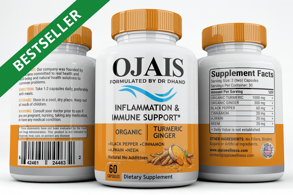 Ojais Wellness, a trusted name in natural health, has formulated its Inflammation & Immune Support Capsules using powerful ingredients like turmeric, giloy, ashwagandha, and black pepper extract – known for their immune-boosting and anti-inflammatory properties. These herbs not only support your immune system but also help reduce internal inflammation, balance stress levels, and improve overall vitality.